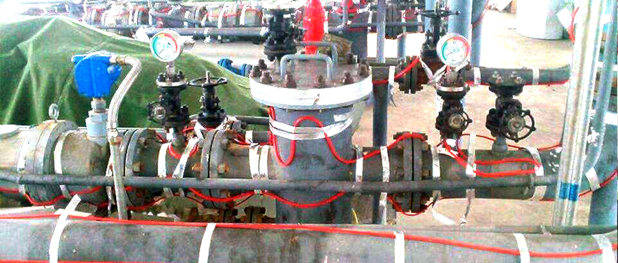 - 采油井口電伴熱帶纏繞方式優(yōu)化案例:某油田在高寒地區(qū)的采油井口,原本電伴熱帶緊貼集輸鋼制管壁纏繞,每天電伴熱向集輸管線熱傳導(dǎo)損失約3.21kw/天。后來采用新的纏繞方法,第一層使用毛氈等絕熱材料對管線進行保溫處理,第二層纏繞電伴熱帶,第三層再用毛氈等絕熱材料包覆電伴熱帶,***外層用塑料布防水。改進后,電伴熱帶向管線內(nèi)液體傳熱的熱量損失降低到1.651kw/天,節(jié)約電能消耗80%以上。