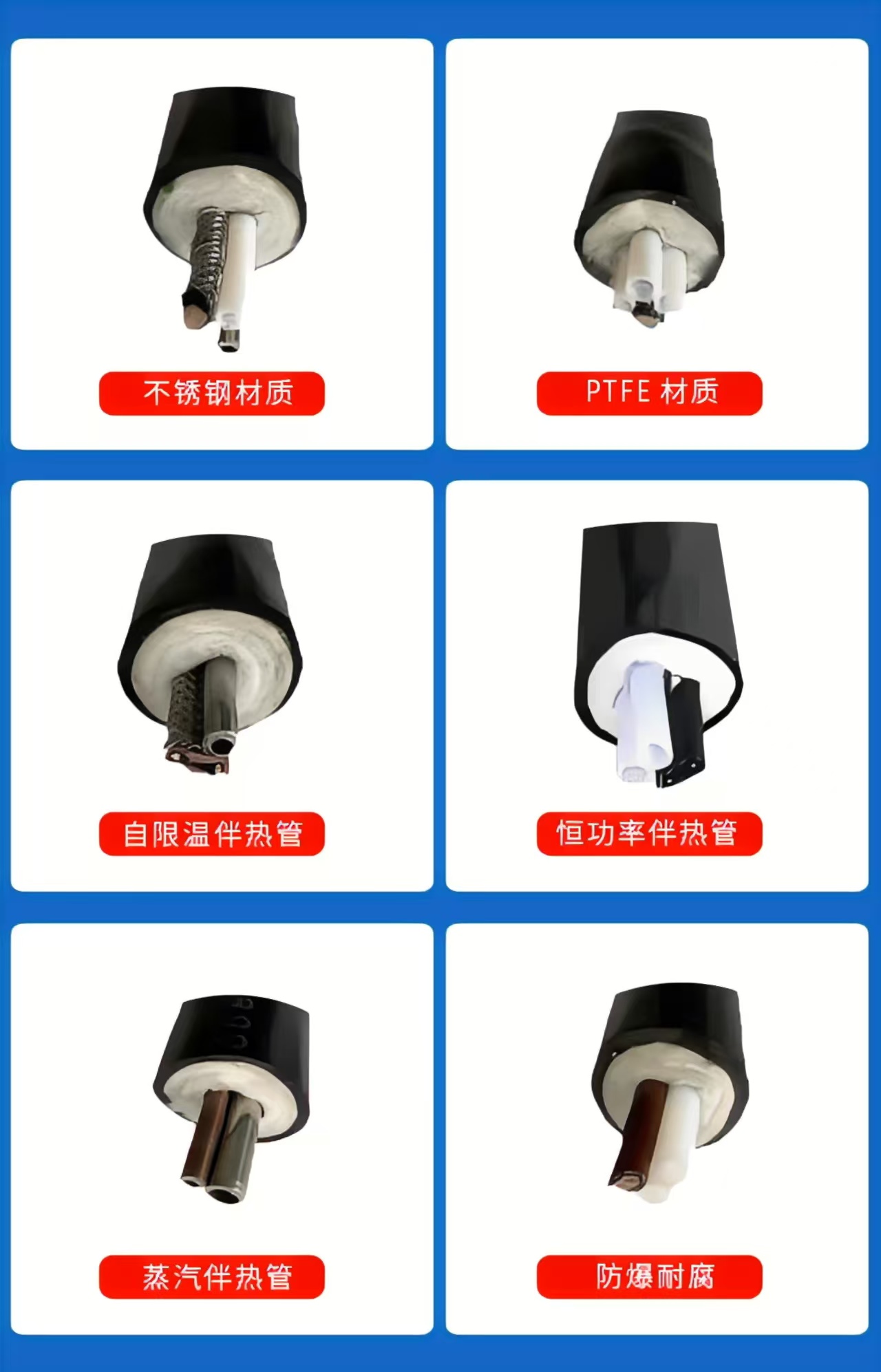 3. 多層防護(hù)結(jié)構(gòu):內(nèi)層為PFA/PTFE/316SS等耐腐蝕采樣管(耐壓1.0MPa,耐溫<200℃),中層為自限溫伴熱帶+有效保溫層,外層為阻燃PE/PVC護(hù)套,兼具防腐蝕、保溫、防爆裂功能。