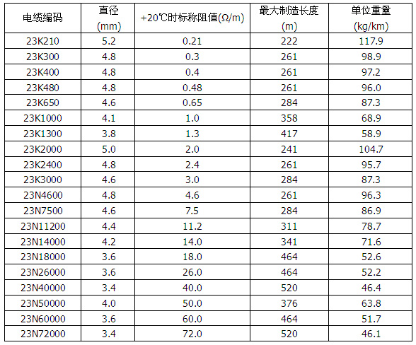 表格3 加熱電纜規(guī)格 (300V 雙芯)