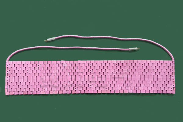 陶瓷加熱器國(guó)際上又稱(chēng)柔性加熱器,它是選用鎳鉻合金絲纜,外套度氧化鋁陶瓷絕緣件制成履帶式或繩式加熱器以及其它產(chǎn)品形式。它能根據(jù)工件形狀、尺寸制作,可以拼接、彎曲、纏繞緊貼工件加熱,具有使用范圍廣,升溫速度快,熱利用率高,操作方便等特點(diǎn)。表面較高溫度可達(dá)1050℃。